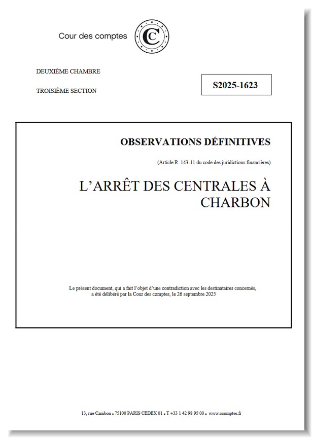 L’arrêt des centrales à charbon, Observations définitives de la Cour des comptes, 26.02.2026, 82 pages